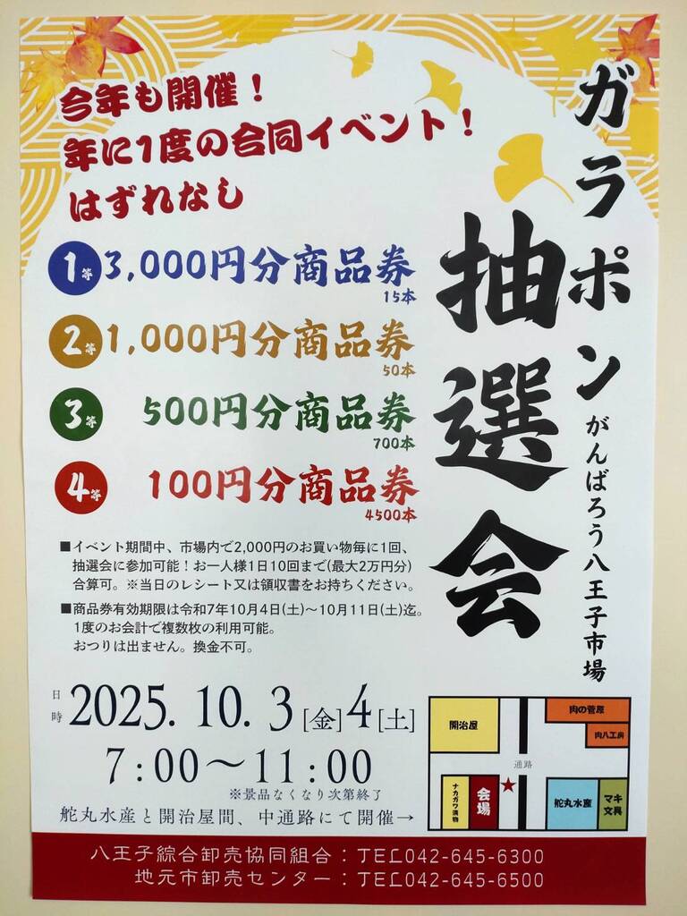 10月3日(金)、4日(土)は、はずれ無しのお得なガラポン抽選会開催します!(朝 7時~11時)詳しくは、添付のチラシへ!